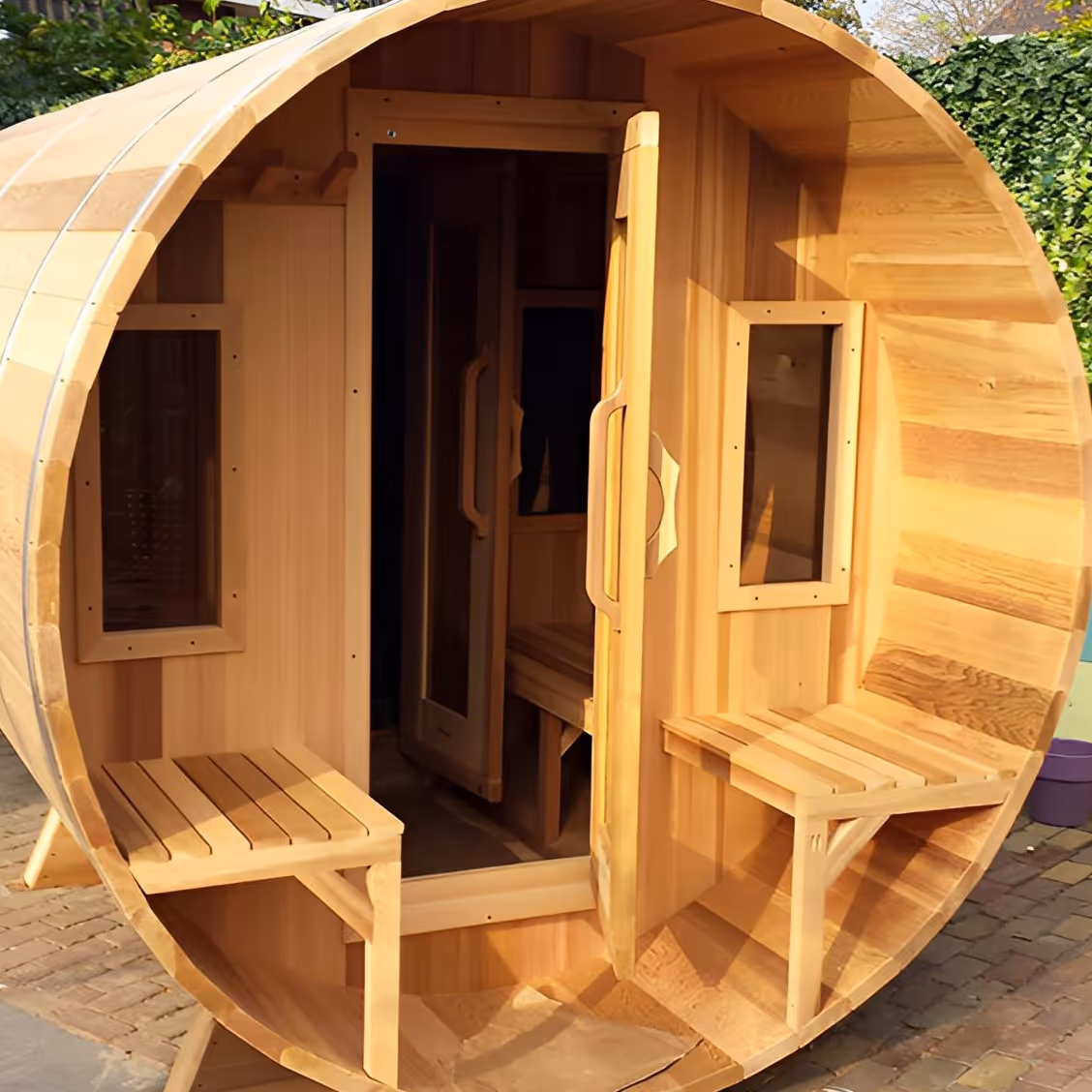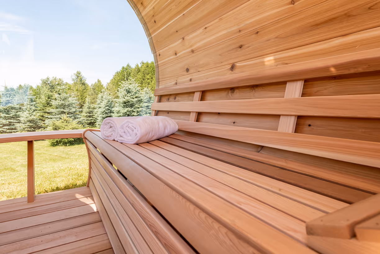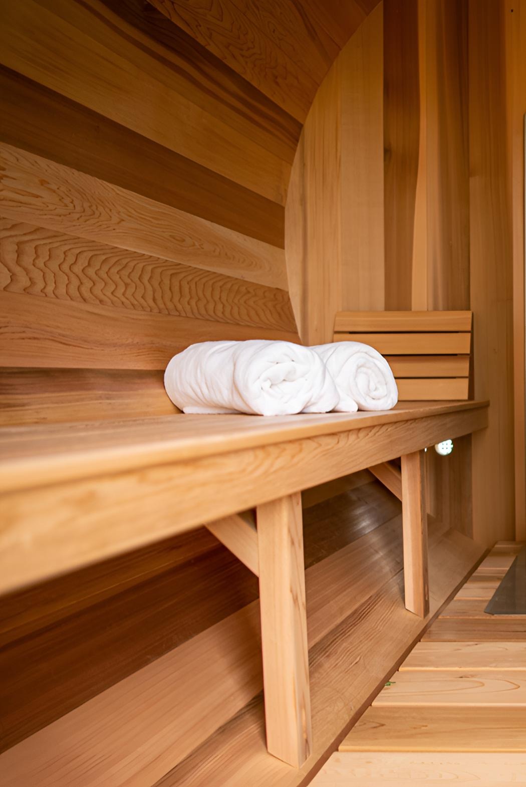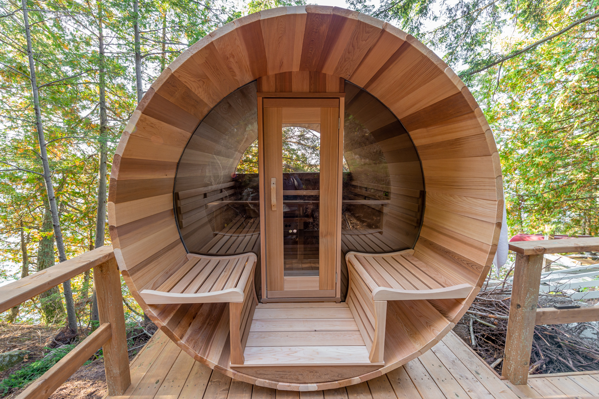 The barrel sauna is carefully crafted to provide the perfect blend of warmth, comfort, and relaxation. The natural aroma of the cedar wood and the even, consistent heat will help you unwind, recharge, and enjoy a quiet moment of solitude or time with loved ones.