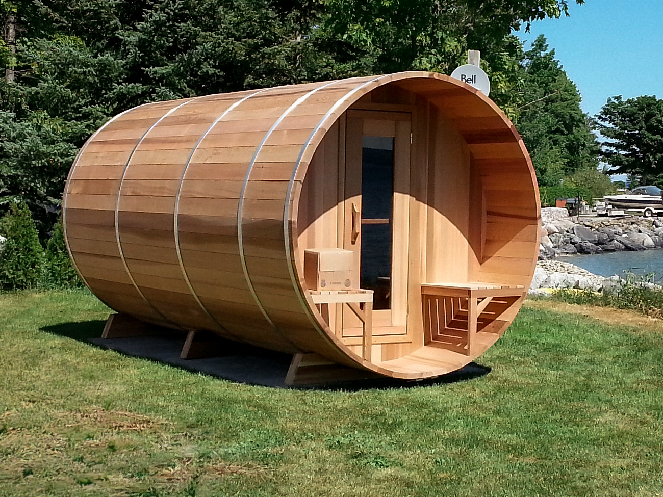 The barrel sauna is carefully crafted to provide the perfect blend of warmth, comfort, and relaxation. The natural aroma of the cedar wood and the even, consistent heat will help you unwind, recharge, and enjoy a quiet moment of solitude or time with loved ones.
