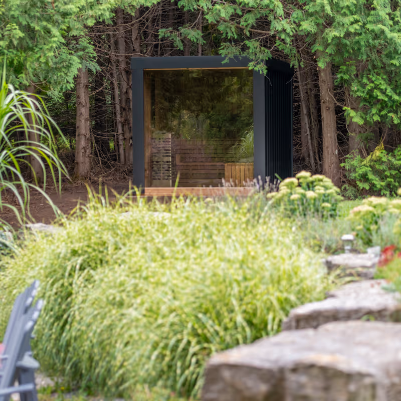 Like the Orion, the Neptune Sauna is designed with both performance and aesthetics in mind. A single large pane double glazed front creates a strong visual connection to the surrounding environment whilst maintaining excellent heat retention.