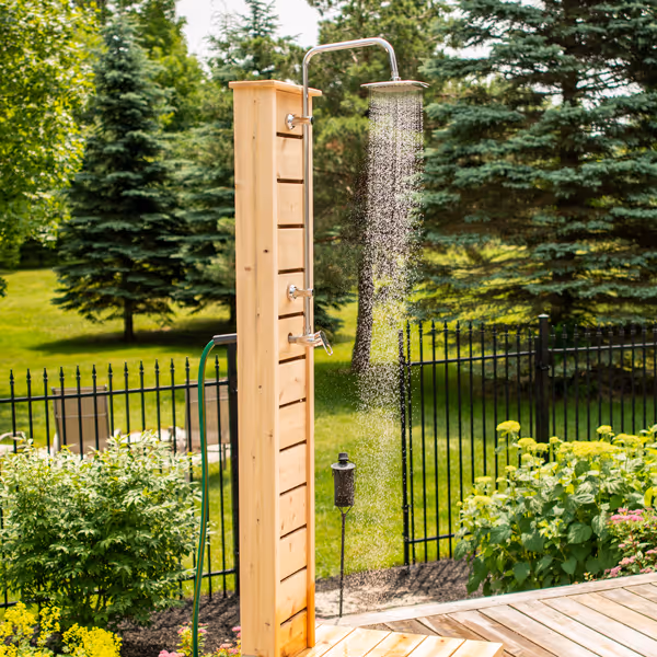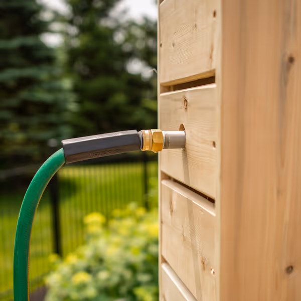 Crafted from knotty white cedar and suited to outdoor use, the Sierra Shower Stand can be plumbed in or connected directly to a standard garden hose. Supplied as a ready-to-assemble kit, it’s easy to install and just as easy to move or reposition as your space evolves.